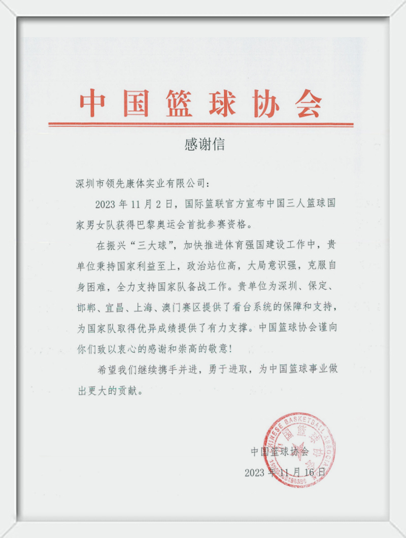 中国篮球协会感谢信