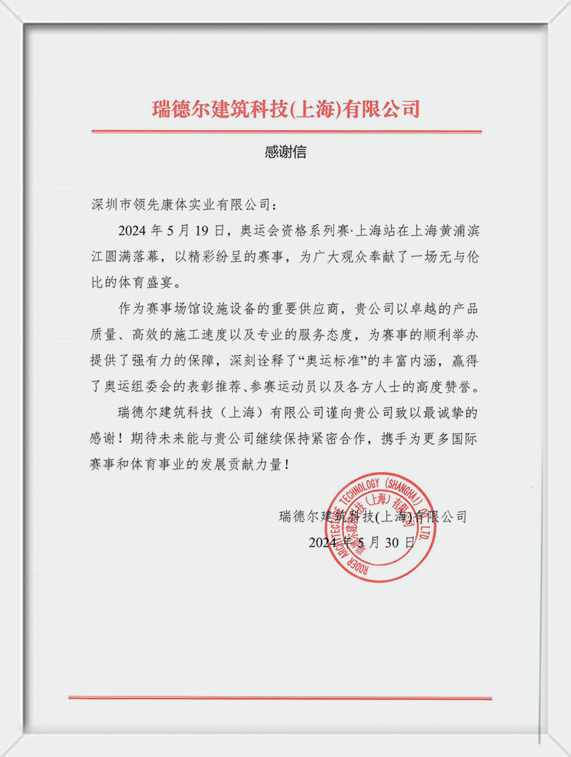 2024年上海奥运资格赛感谢信