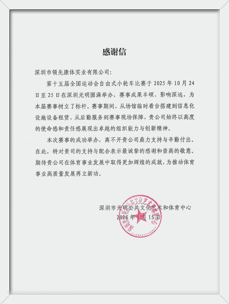 第十五届全国运动会自由式小轮车比赛甲方感谢信