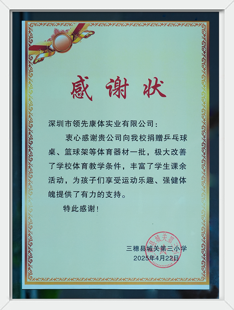 三穗县城关第三小学感谢状