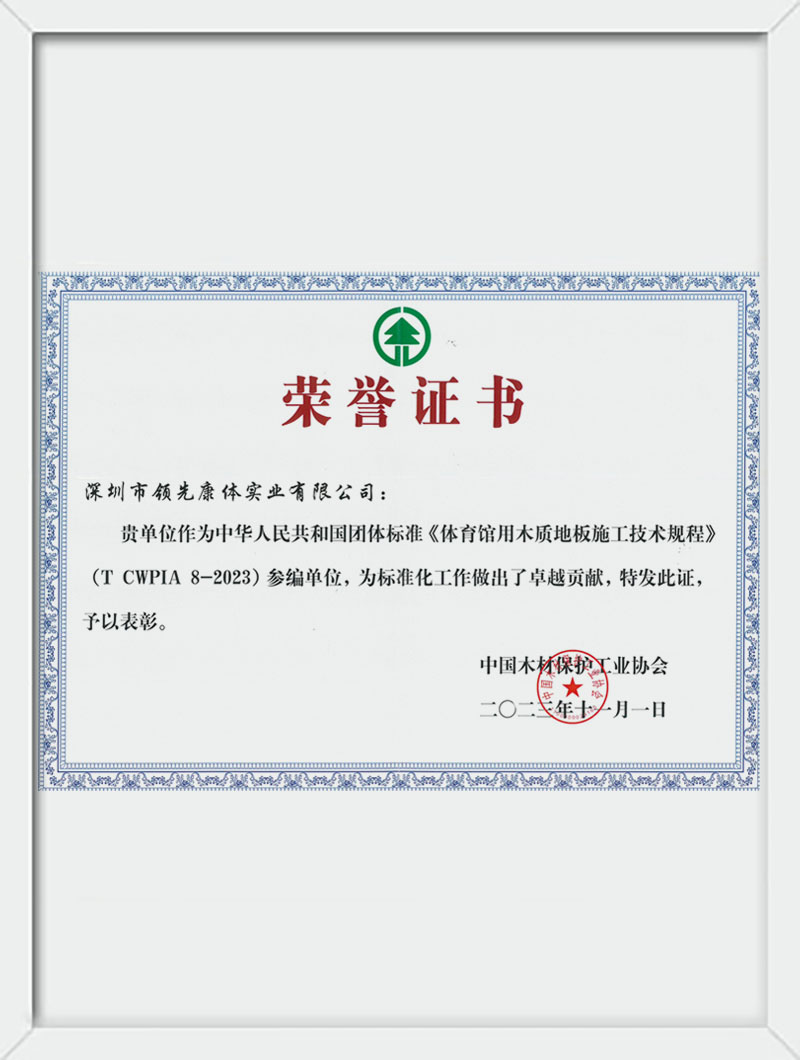 《体育馆用木质地板施工技术规程》参编单位荣誉证书