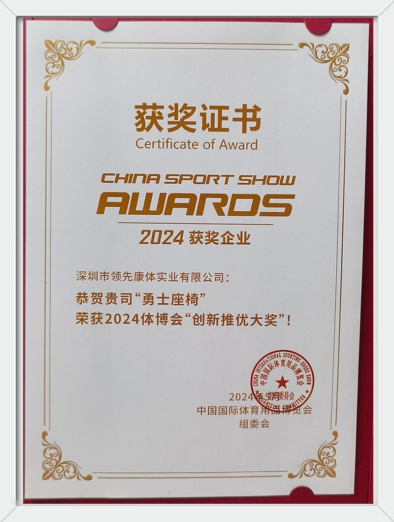 2024年 勇士座椅 荣获2024体博会 创新推优大奖