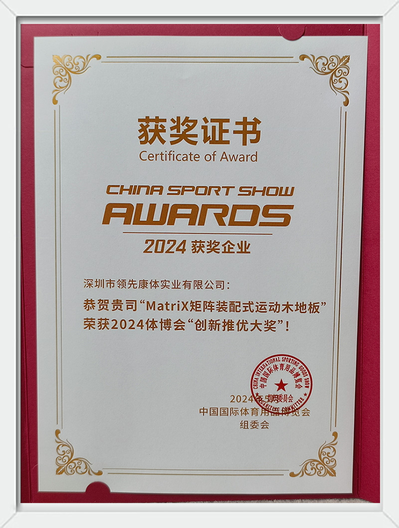 2024年MatriX矩阵装配式运动木地板荣获2024体博会创新推优大奖