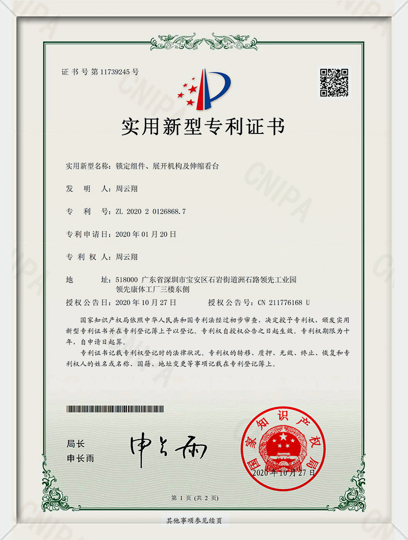 锁定组件、展开机构及伸缩看台